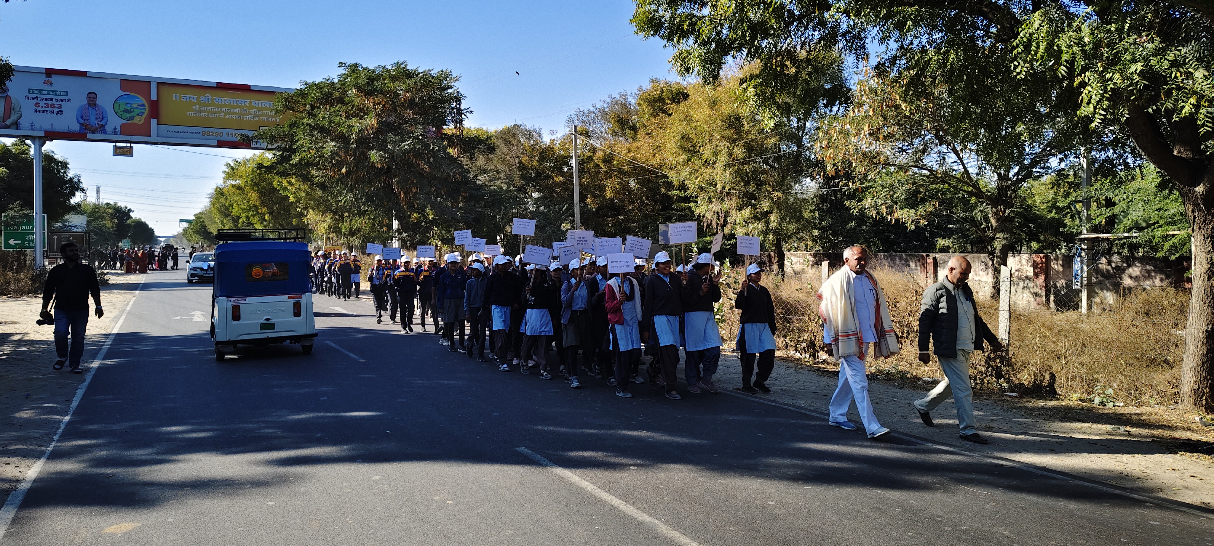 सालासर (राजस्थानलिंक.काॅम) - मुख्यमंत्री भजनलाल शर्मा के कार्यकाल के दो वर्ष पूर्ण होने के उपलक्ष मे कस्बे के दामोदरलाल सरावगी राजकीय बालिका उच्च माध्यमिक विद्यालय मे बुधवार को जिला स्तरीय सफाई व स्वच्छता कार्यक्रम का आयोजन किया। कार्यक्रम के मुख्य अतिथि स्वच्छ भारत मिशन ग्रामीण निदेशक सलोनी खेमका, सुजानगढ एडीएम संतोष कुमार मीणा, एसडीएम ओमप्रकाश वर्मा, तहसीलदार गिरधारीलाल पारीक, विकास अधिकारी बीदासर राजूराम, सीईओ चूरू स्वेता कोचर, एसीईओ दुर्गा ढाका, ग्राम पंचायत प्रशासक गीतादेवी ढाका थे। प्रधानाचार्य ऋर्चा आर्य ने बताया कि कार्यक्रम के महात्मा गंाधी राजकीय विद्यालय, बालिका विद्यालय, वरिष्ठ उपाध्याय संस्कृत विद्यालय, थार उच्च माध्यमिक विद्यालय सहित ग्राम की सैकड़ो महिला व विद्यार्थियो ने स्वच्छ भारत मिशन के तहत सफाई अभियान शिविर मे भाग लिया। शिविर मे चित्रकला व निबंध प्रतियोगिता का आयोजन किया गया। प्रतियोगिता के प्रथम, द्वितीय व तृतीय स्थान प्राप्त करने वाले विद्यार्थियो को उत्कृष्ठ ईनाम दिया गया।
