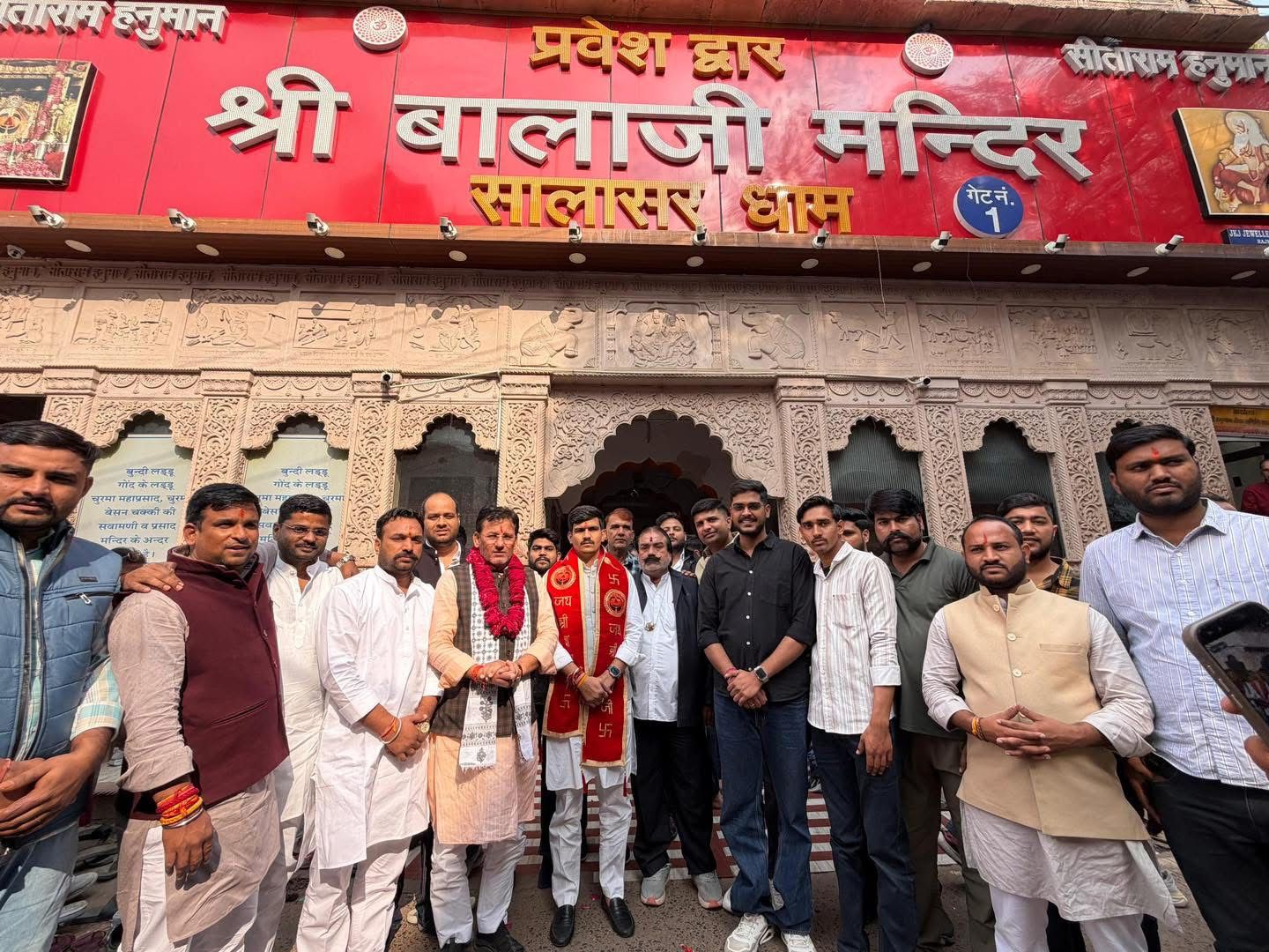 सालासर (राजस्थानलिंक.काॅम) - विश्वविख्यात सिद्धपीठ सालासर धाम मे नववर्ष के उपलक्ष पर लाखो श्रद्धालु बालाजी महाराज के दर्शन किए। नववर्ष के स्वागत मे बालाजी महाराज के चरणो मे आस्था के केन्द्र सालासर धाम मे श्रद्धालुओ की भीड़ उमड़ी हुई है। सालासर की हर गल्ली व हर चैराहे पर बालाजी महाराज के भक्त नजर आ रहे है। नववर्ष के स्वागत मे सालासर धाम मे कई दिनो पहले ही श्रद्धालु सालासर के होटल, धर्मशाला व गेस्ट हाऊस को पहले ही बुक करवा लेते है। वर्तमान समय मे सालासर की हर धर्मशाला व होटल बुक है। नववर्ष के उपलक्ष पर दिल्ली, पंजाब, हरियाणा, मध्यप्रदेश, उतरप्रदेश, गुजरात व राजस्थान के अनेक क्षैत्रो से श्रद्धालु सालासर धाम पंहुचे है।