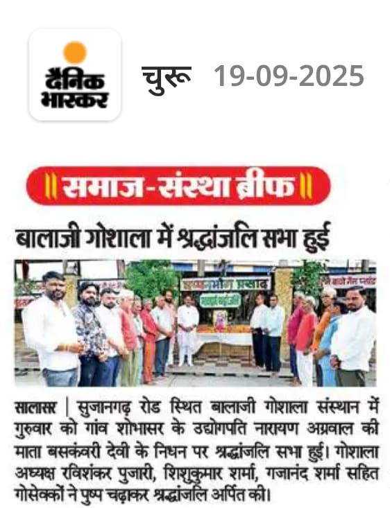 👉 18 सितम्बर, 2025 (श्रद्धांजलि सभा सालासर गौशाला)