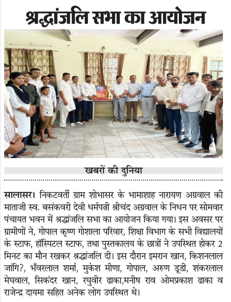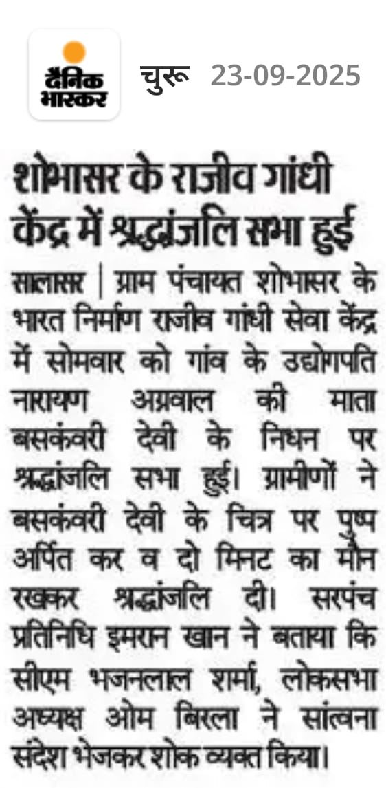 👉 22 सितम्बर, 2025 (श्रद्धांजलि सभा ग्राम पंचायत शोभासर)